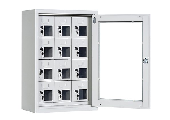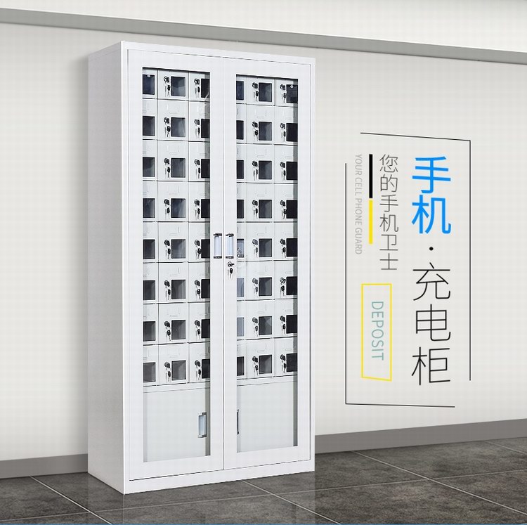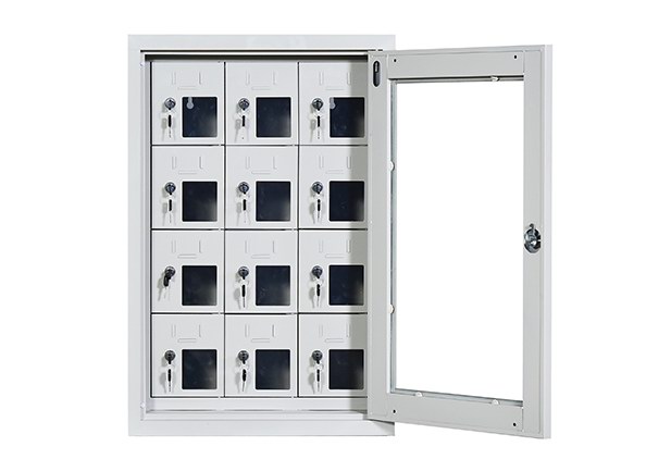 手機(jī)保密柜正面為對(duì)開(kāi)金屬邊框玻璃大門,便于觀察柜內(nèi)情況,堅(jiān)固透亮,美觀大方。