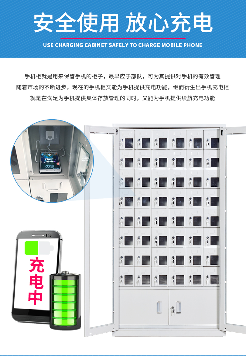 手機(jī)保密柜正面為對(duì)開金屬邊框玻璃大門,便于觀察柜內(nèi)情況,堅(jiān)固透亮,美觀大方。