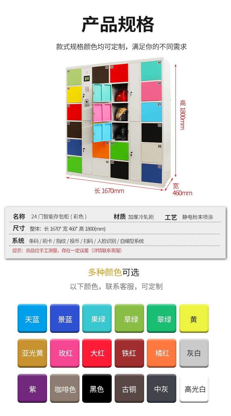 24門(mén)彩色智能系統(tǒng)存包柜